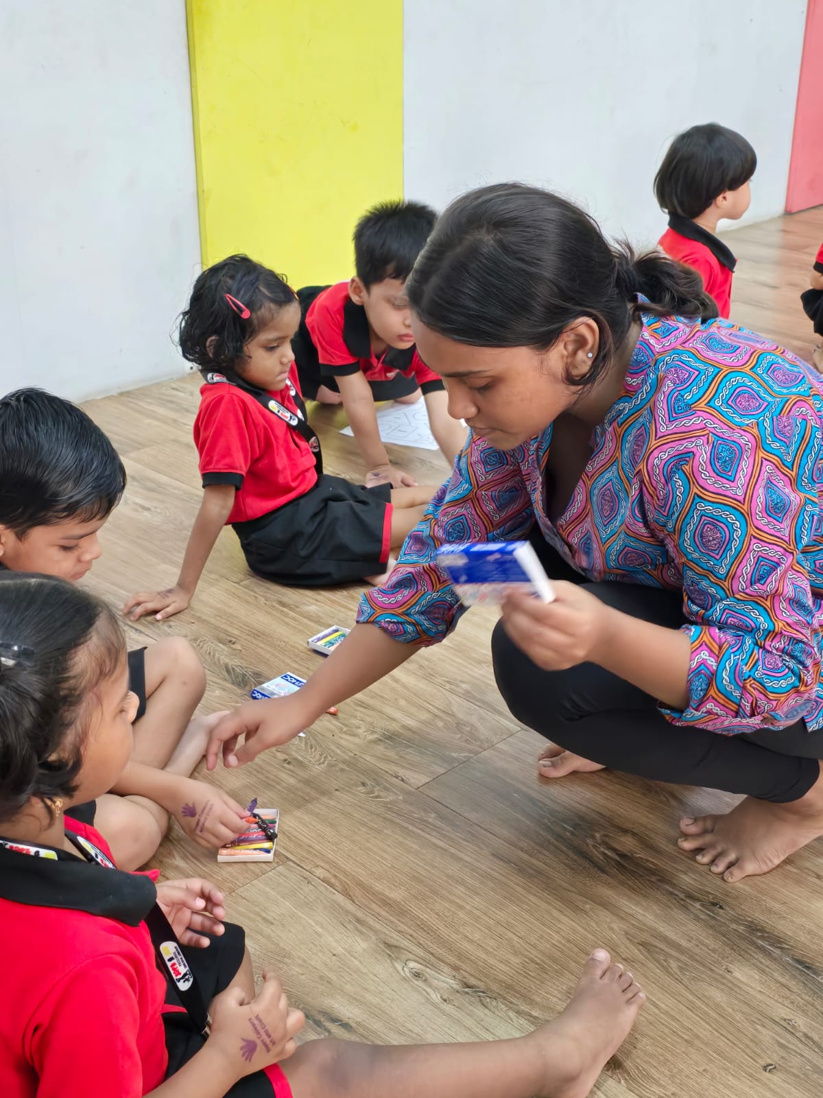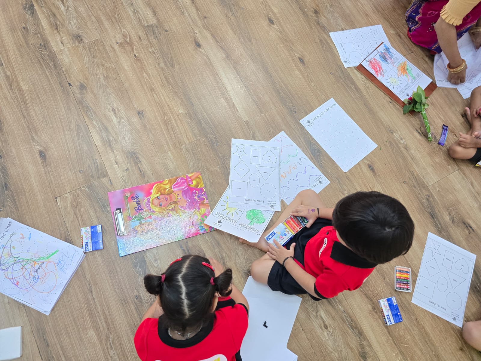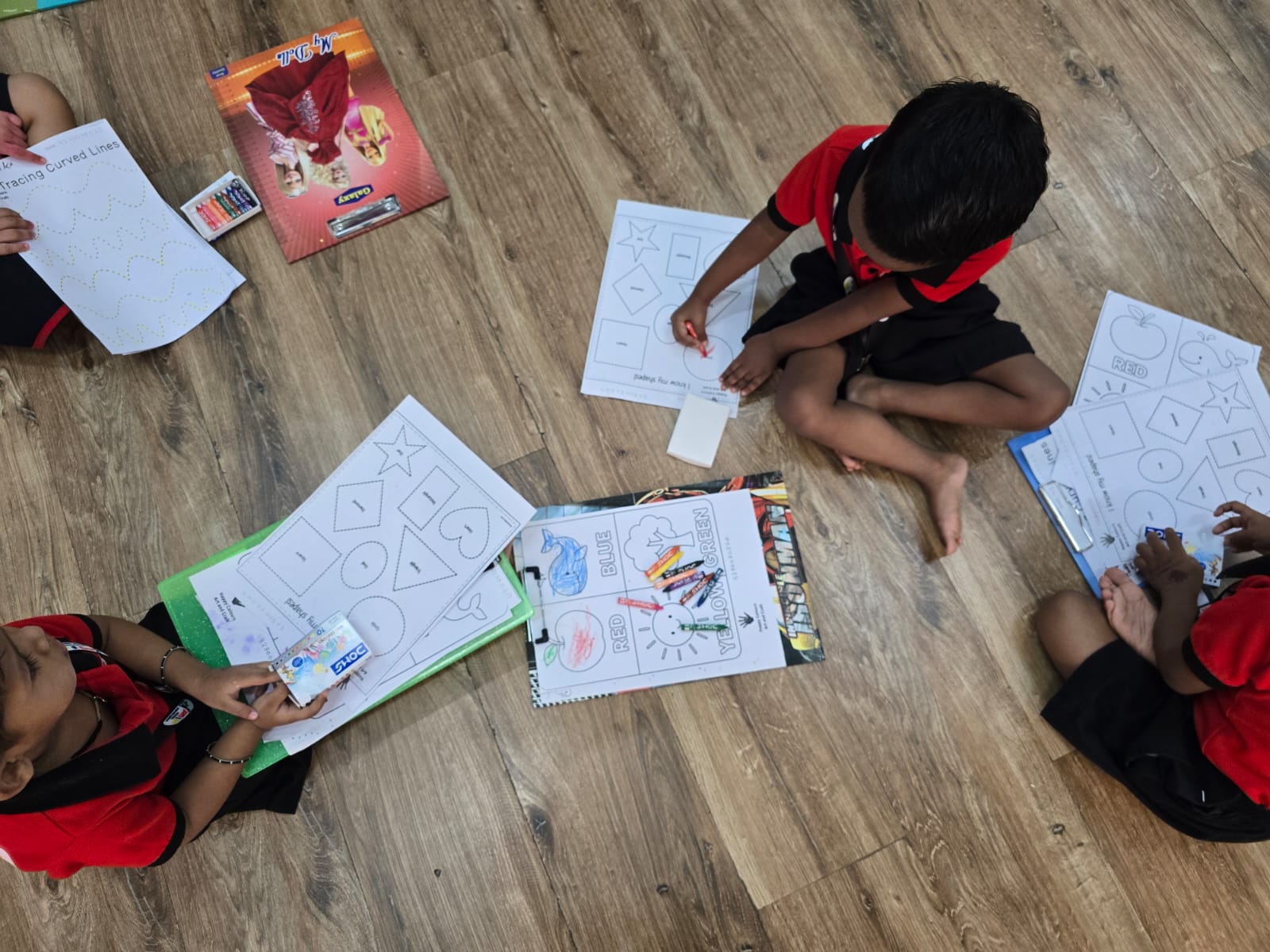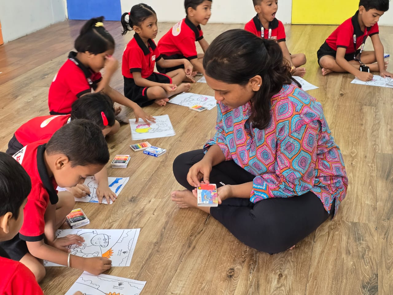 Introduction to colors, shapes, and basic art concepts through play-based learning.